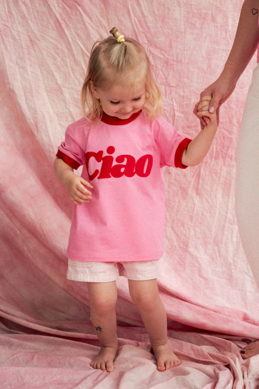 Bestseller T-shirt Ciao Sunday teraz i dla Twojej pociechy! Połączenie czerwieni z różem to świetny...
