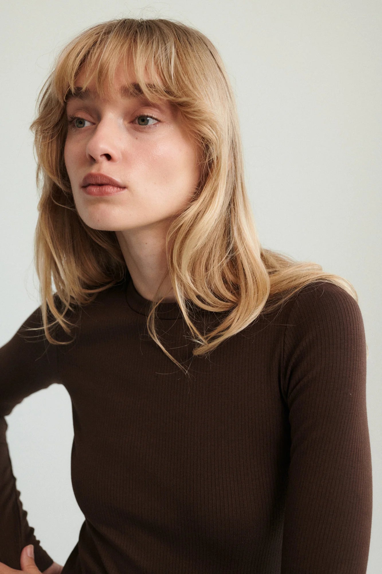 Longsleeve z bawełny organicznej / 14 / 23 / dark chocolate