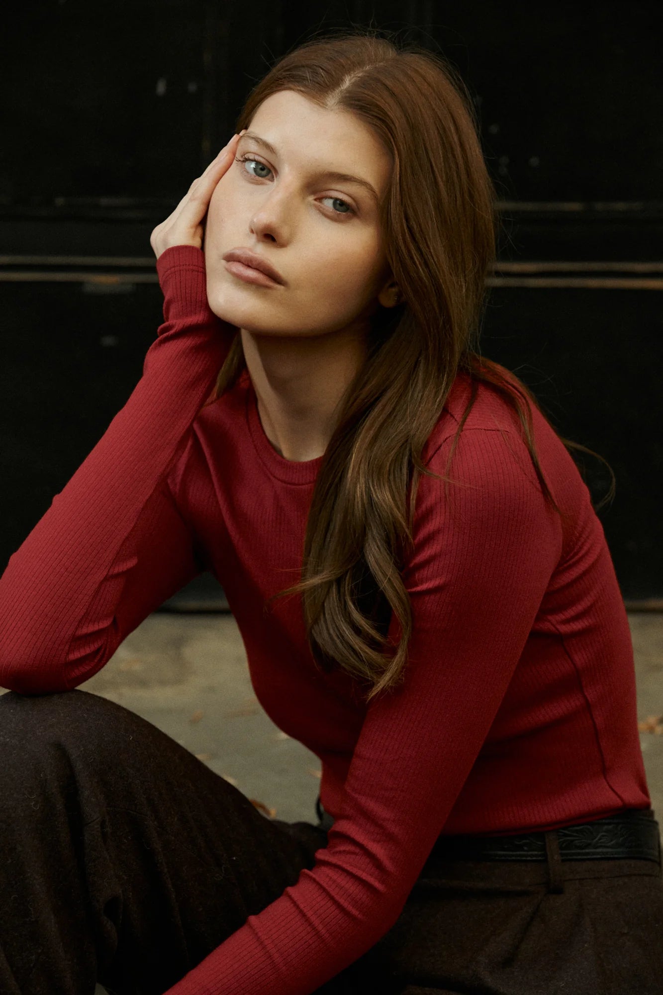 Klasyczny, dopasowany top z długim rękawem. Miekka, prążkowana bawełna organiczna sprawia że longsleeve jest wygodny i funkcjonalny. Doskonała i niezawodna baza Twojej garderoby.