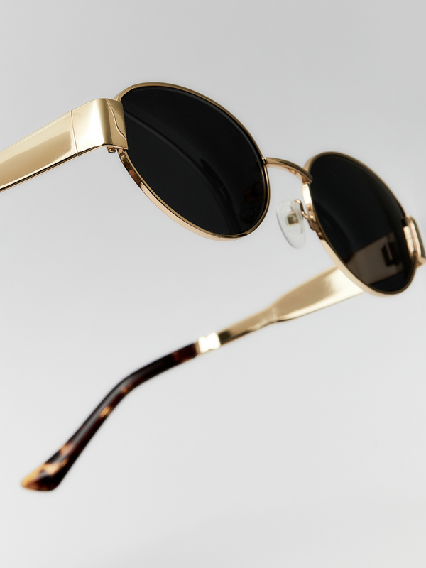 LEILA to model okularów przeciwsłonecznych nawiązujący do kultowej mody lat 90. Okulary LEILA w pięknym złotym odcieniu z soczewką w kolorze butelkowej zieleni wykonane z hipoalergicznej stali nierdzewnej.