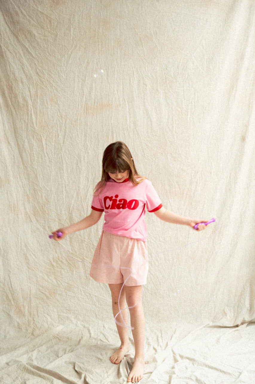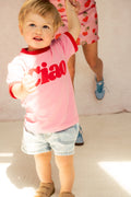 Bestseller T-shirt Ciao Sunday teraz i dla Twojej pociechy! Połączenie czerwieni z różem to świetny wybór na lato. Koniecznie noście go razem <3 .