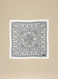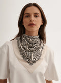 Uniwersalna bandana, ręcznie wykończona, wykonana z miękkiej wiskozy w kolorze ecru-czarnym.