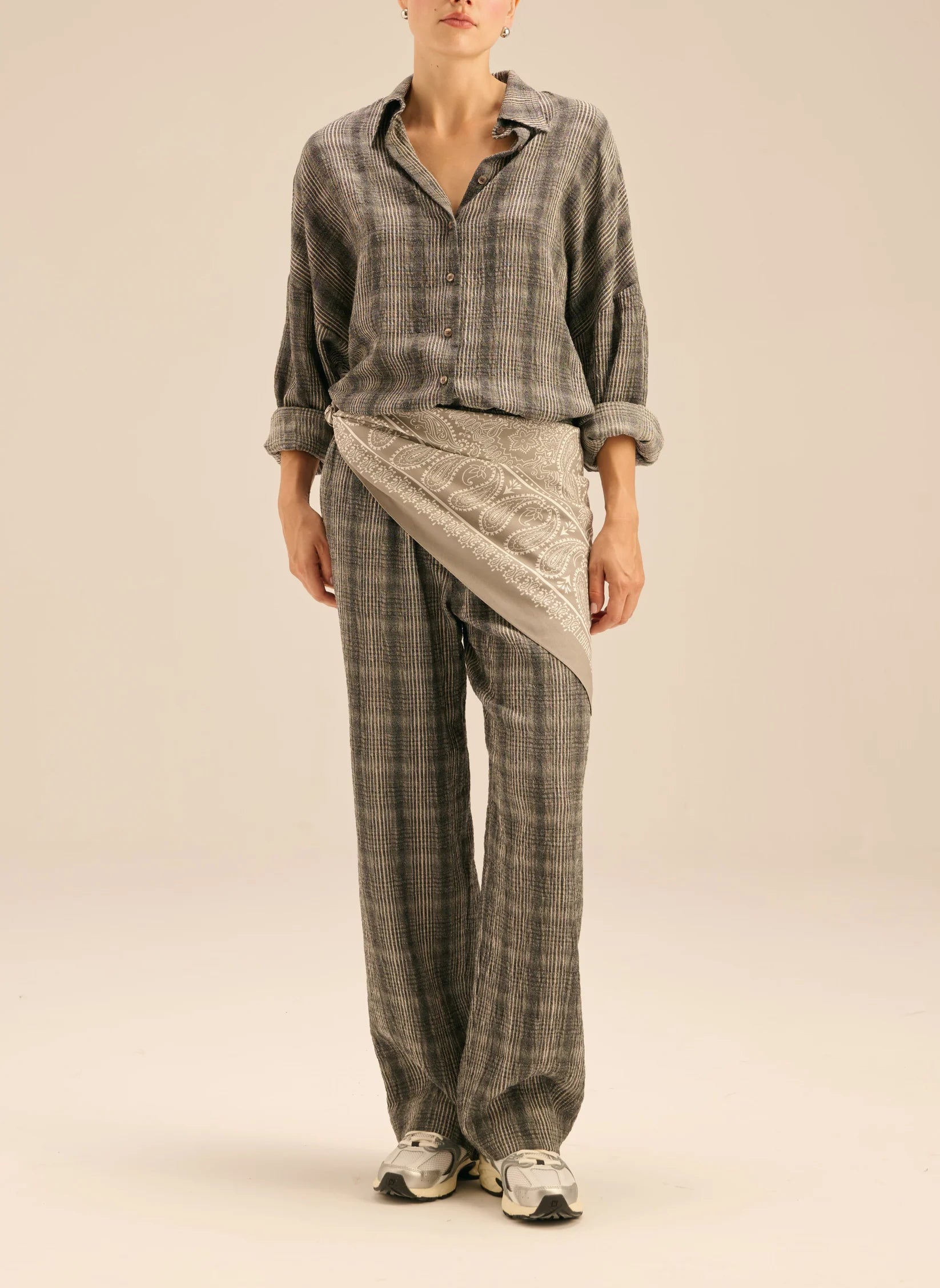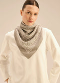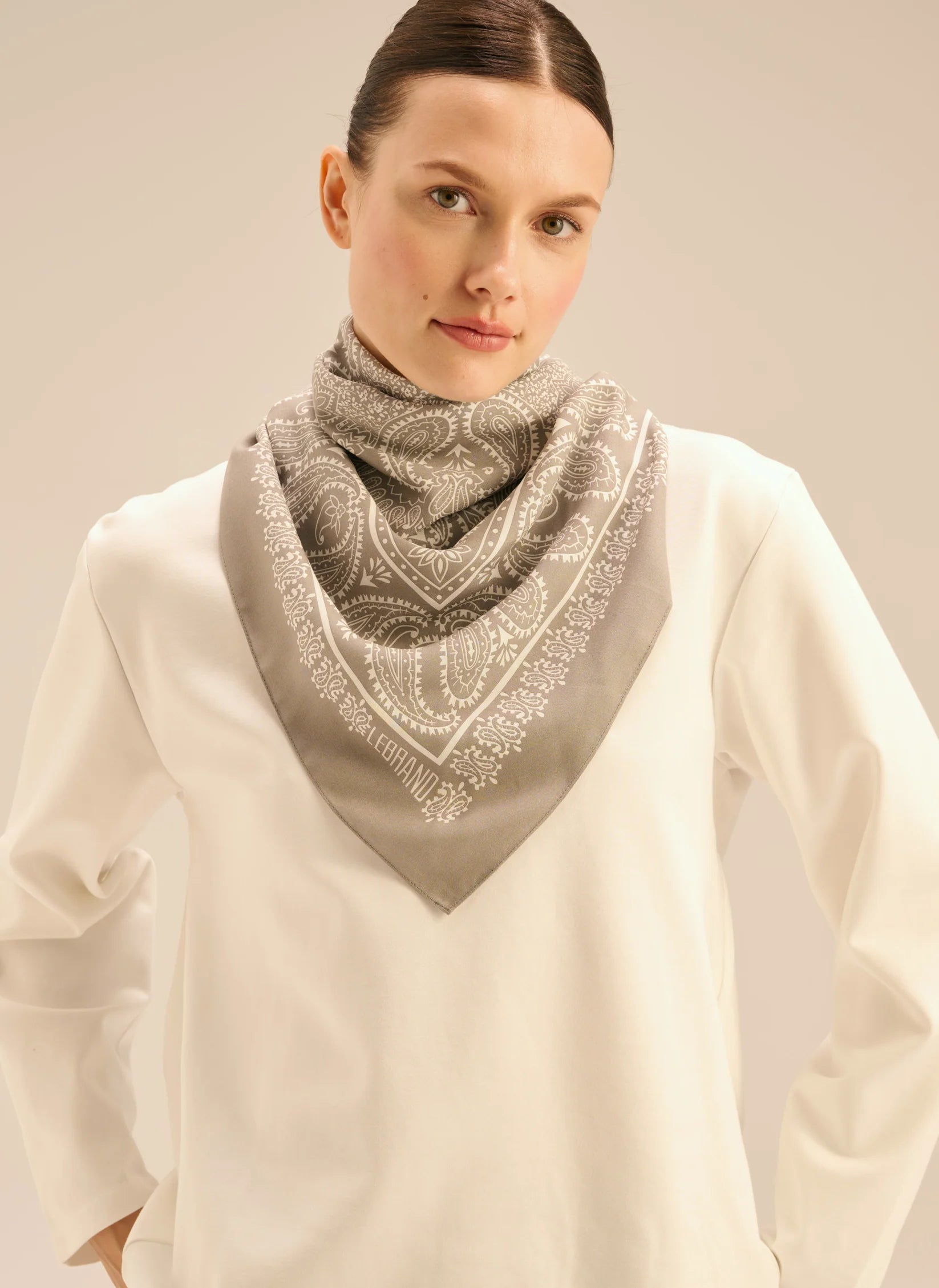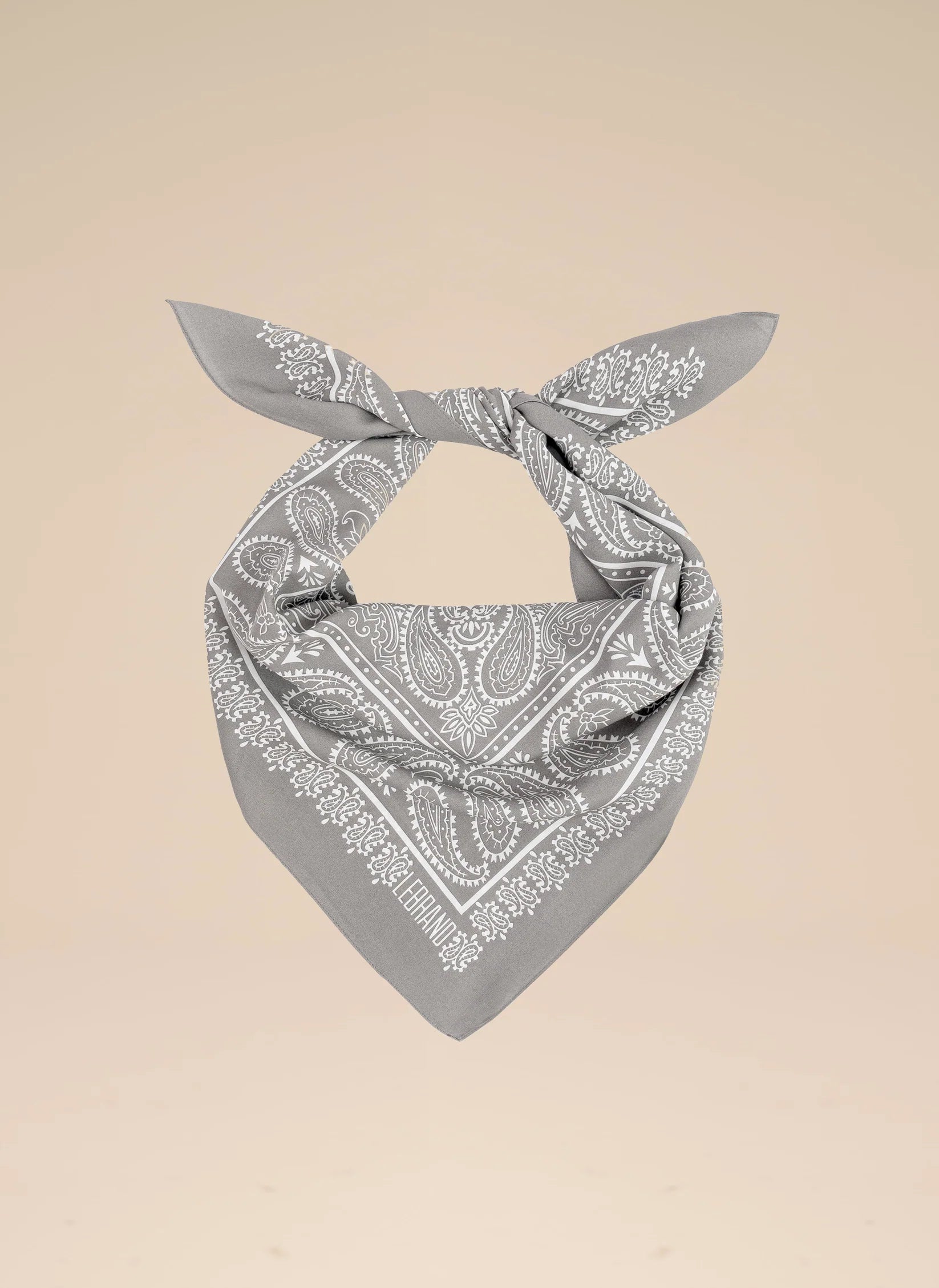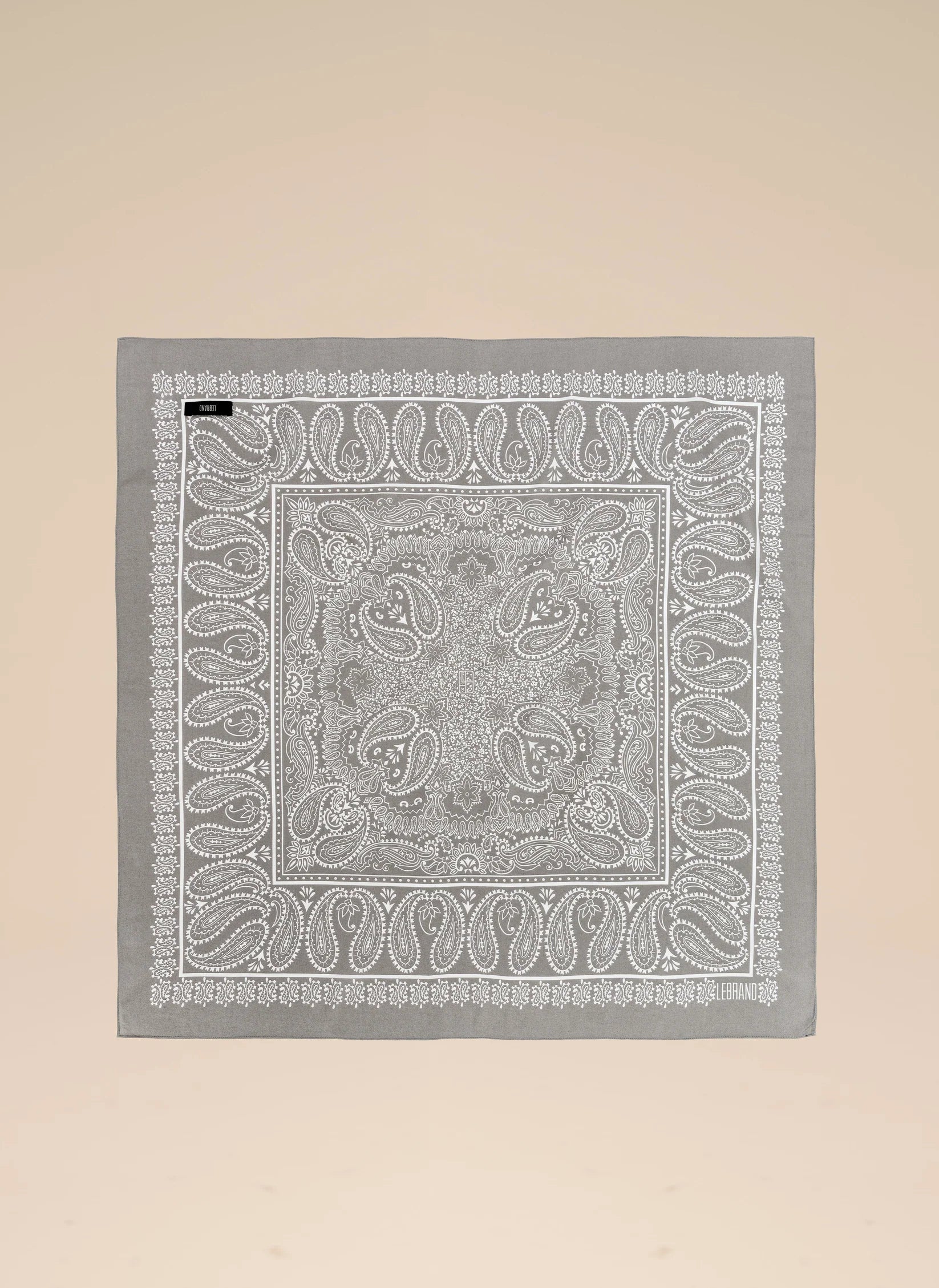 Uniwersalna chusta typu bandana, ręcznie wykończona, wykonana z miękkiej wiskozy w kolorze szarym.