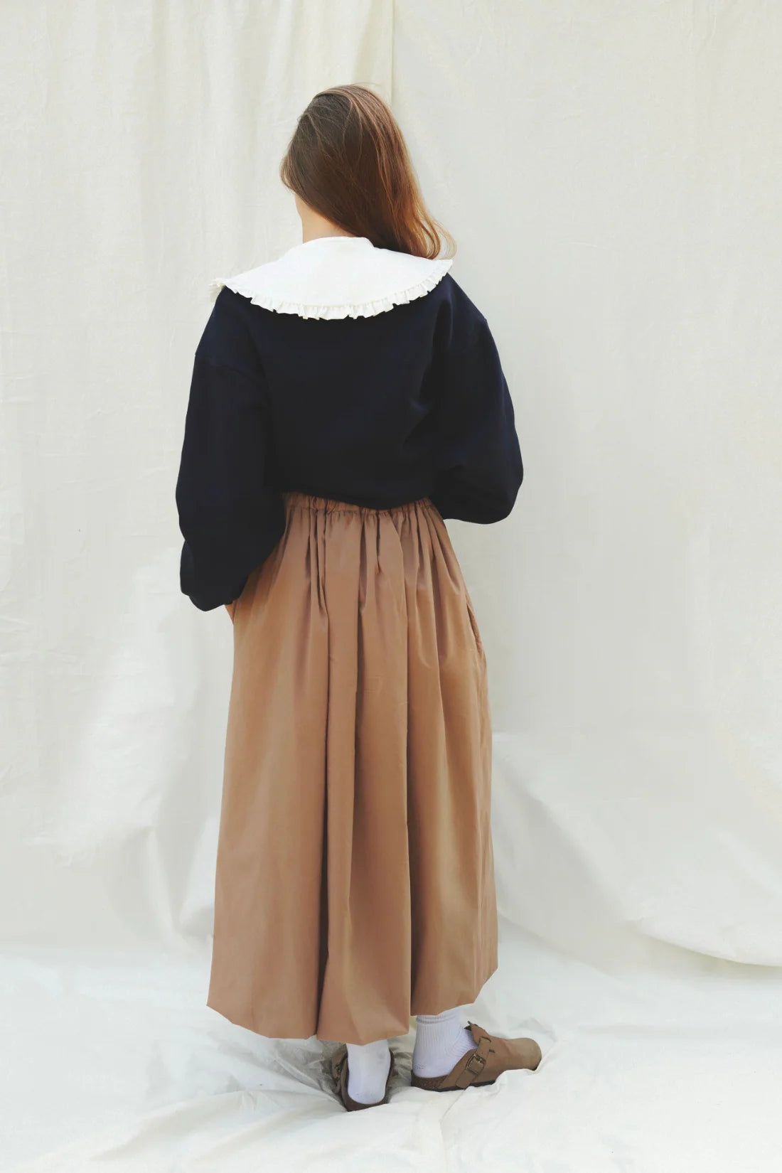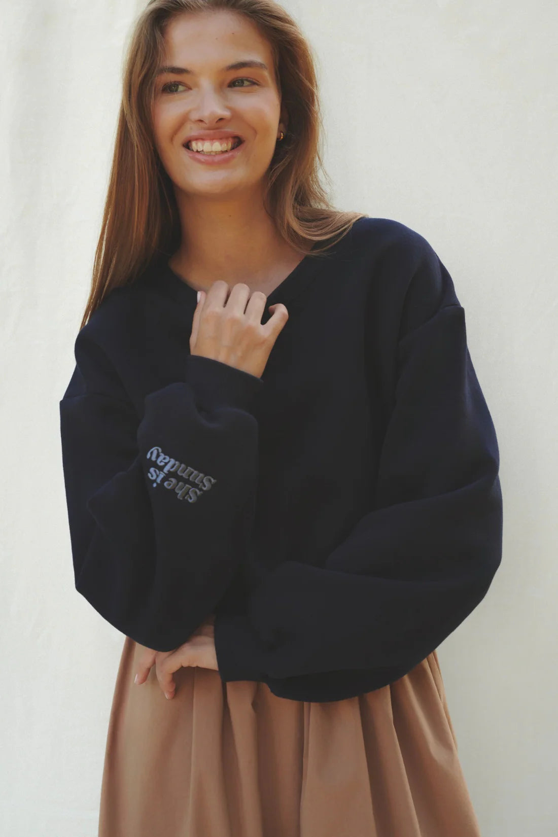 Bluza Colletto to klasyk z twistem – granatowy kolor i ozdobny odpinany kołnierzyk w odcieniu śmietanki sprawiają, że zyskuje wyjątkowego, dziewczęcego charakteru. To model, który łączy elegancję i komfort w jednym. Idealna do spódnicy czy jeansów, sprawdzi się w codziennych stylizacjach, ale też w bardziej wysmakowanych zestawach. To bluza, która sprawia, że nawet zwykły poranek nabiera uroczystego nastroju.