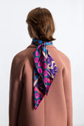 100% twill jedwabny. W celu jak najdłuższego zachowania koloru zalecamy pranie chemiczne. Można również delikatnie posypać apaszkę mąką ziemniaczaną i wyczyścić zabrudzone miejsca miękką szczoteczką.