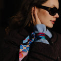 Jedwabny krawacik w autorski print projektu Kasi Skórzyńskiej to dodatek, który nawet zwykłej stylizacji, takiej jak jeansy i biały t-shirt, doda czegoś wyjątkowego. Świetnie sprawdzi się też z elegancką biała koszulą, przewiązany na nadgarstku zamiast bransoletki czy jako ozdoba we włosach. Odpowiednio go pielęgnuj, a pozostanie w Twojej szafie na zawsze.