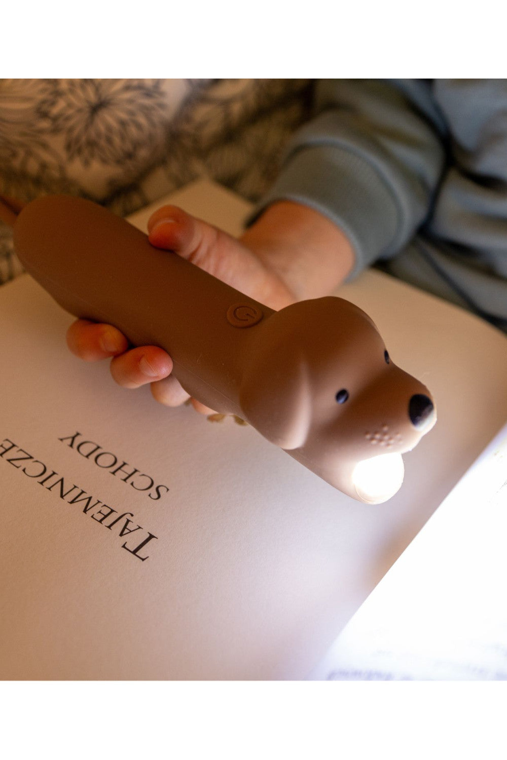 Latarka w kształcie psa, pokryta miękkim silikonem, to doskonałe połączenie funkcjonalności i zabawy. Dzięki poręcznej regulacji jasności idealnie nadaje się na wieczorne przygody, teatr cieni czy opowiadanie bajek na dobranoc. Ładowana przez kabel USB-C, zapewnia komfort i długie godziny użytkowania. Zawieszka umożliwia zawieszenie latarki tam, gdzie jest najbardziej potrzebna.
