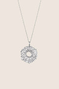 Okrągły wisiorek-kwiat zawieszony na łańcuszku o dł. 50 cm. Dekoracyjny, florystyczny motyw inspirowany duchem vintage. Wyjątkowo elegancki. Noś go z letnimi sukienkami lub lekko rozpięta koszulą. Naszyjnik doskonale sprawdzi się jako podarunek “z” lub “zamiast” kwiatów.