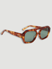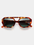 Zielone, polaryzacyjne soczewki zapewniają nie tylko pełną ochronę przed promieniowaniem UV, ale także redukują odblaski i poprawiają kontrast widzenia – idealne zarówno do miasta, jak i na plażę. Grube oprawki i solidne zauszniki gwarantują trwałość oraz wyjątkowy look. Dla kogo? Dla indywidualistów, którzy nie boją się wyrazistych dodatków i cenią designerską jakość. Cechy: Ręcznie wykonane z włoskiego acetatu premium Oryginalny mostek typu "keyhole" Wzór tortoise w ciepłych odcieniach bursztynu i brązu. Zielone soczewki z filtrem UV400 i polaryzacją. Wyjątkowa, geometryczna forma opraw.