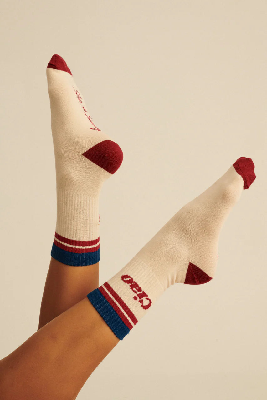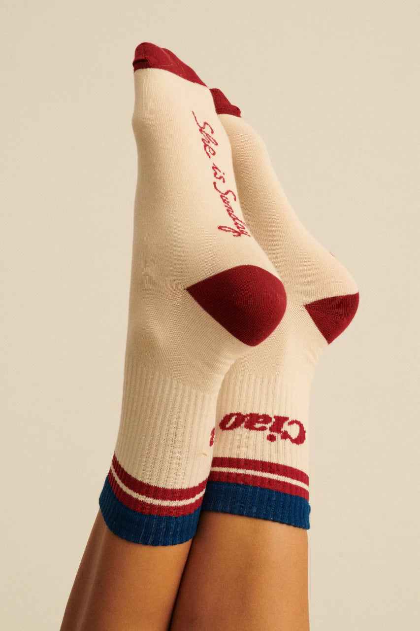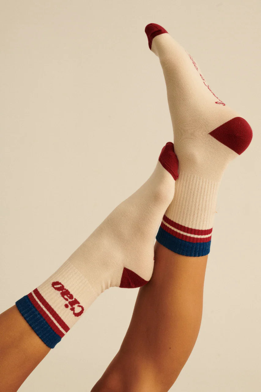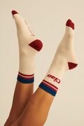 Stylowe skarpetki w bordowo - granatowej kolorystyce wykonane z miękkiej i przyjemnej w dotyku bawełny, dzięki czemu są bardzo komfortowe w noszeniu. Idealne na jesień i do dodania charakteru stylizacji!
