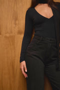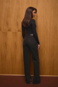Jeansy wykonane w 100% z wysokogatunkowej bawełny w czarnym odcieniu. Kobiecy krój podkreślający każdą figurę. Wysoki stan oraz wyjątkowe szycia nadają im unikatowości. Idealnie zestawiają się z klasycznymi topami jak i tymi bardziej eleganckimi.