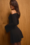 Model wyróżnia się asymetrycznym dekoltem na jedno ramię – jedno ramię pozostaje subtelnie odkryte, co dodaje całości nowoczesnej i zmysłowej formy. Długie rękawy w stylu dzwonek nadają lekkości oraz unikalnego charakteru, tworząc wyrafinowaną linię. Krótki fason pięknie eksponuje nogi, czyniąc tę sukienkę idealnym wyborem na wieczorne wyjścia, randkę czy wyjątkowe okazje.