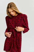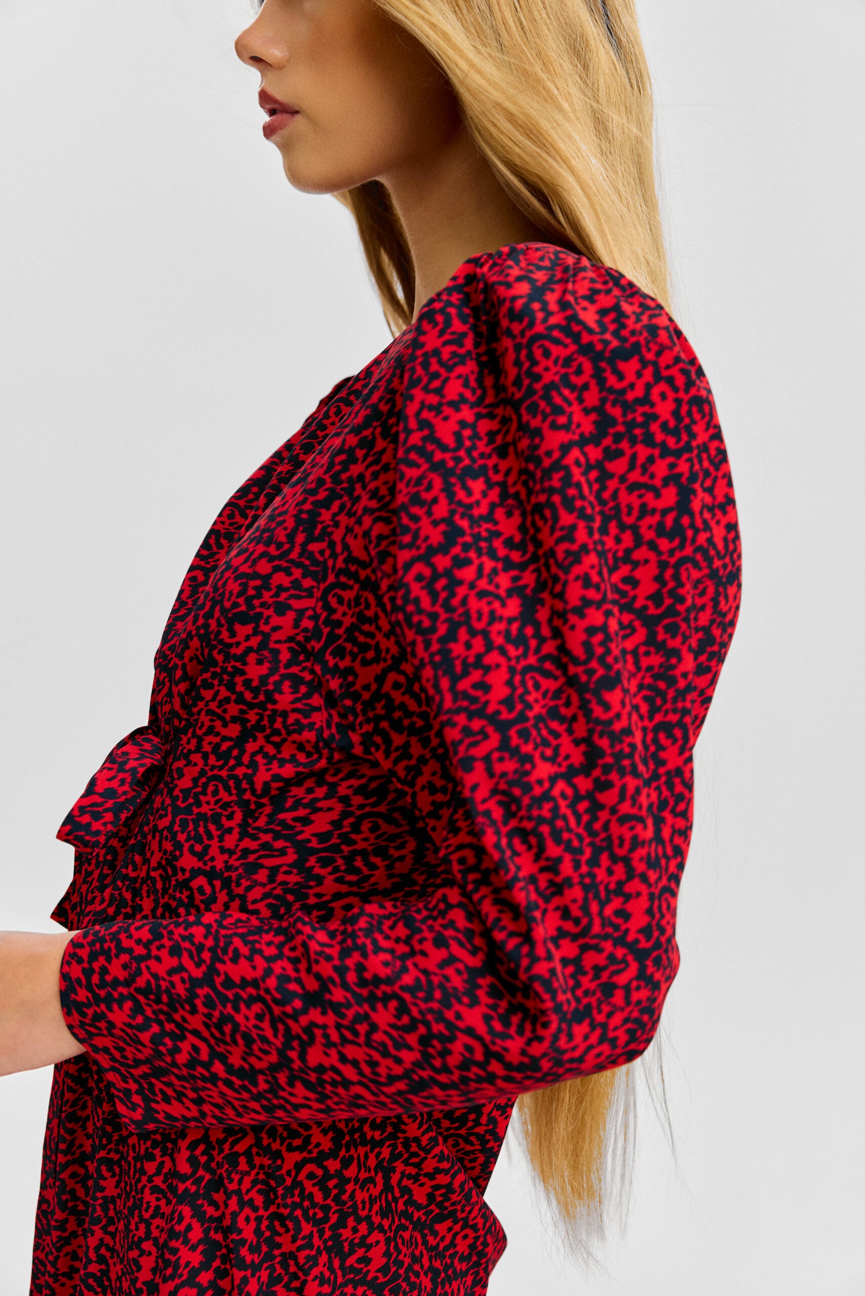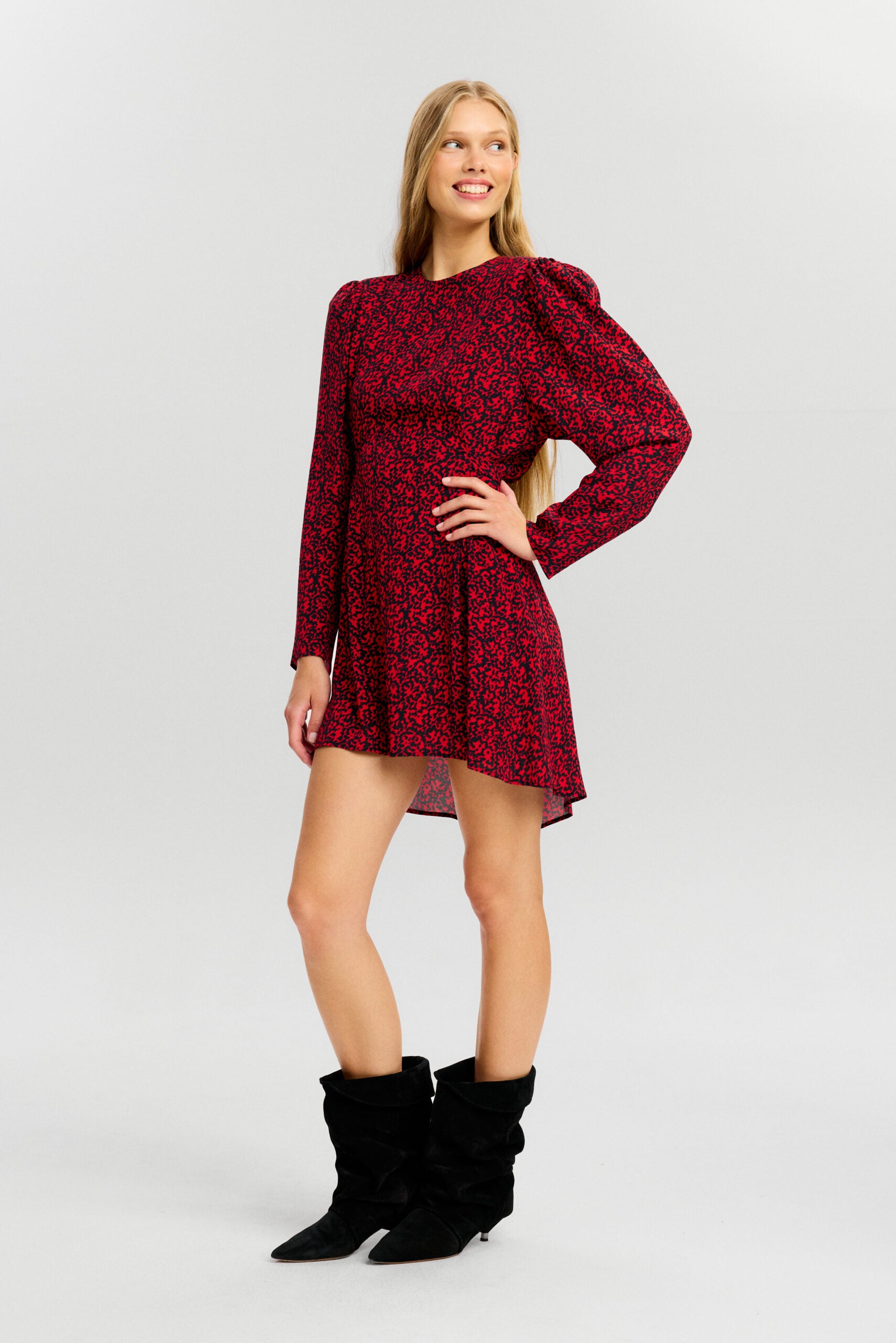 - Sukienka o długości mini, wykonana ze zwiewnej, lejącej tkaniny.