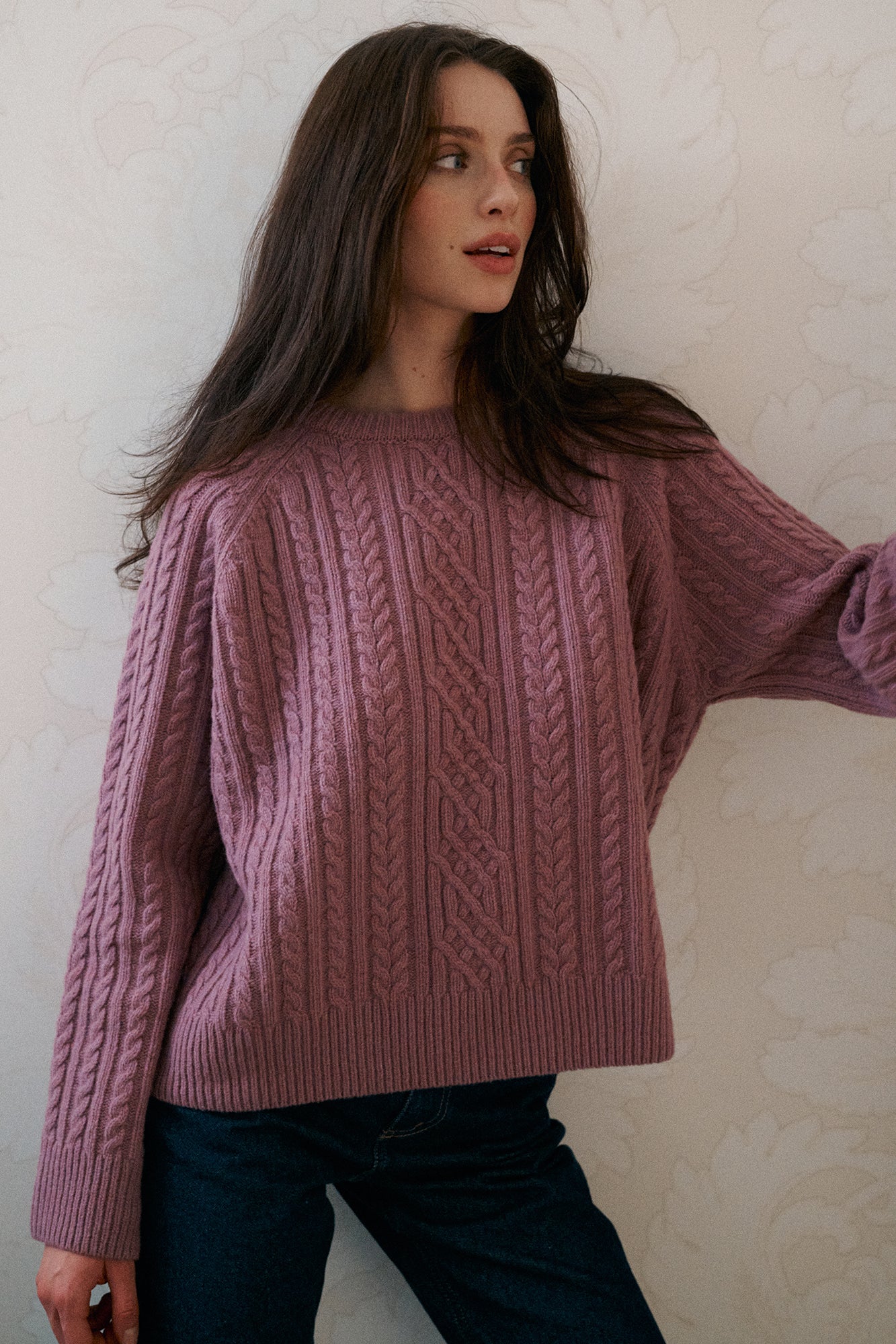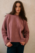 Luźny sweter z dekoracyjnym, warkoczowym splotem. Pudełkowy fason i wysokiej jakości, włoska wełna sprawia, że sweter świetnie sprawdzi w wielu stylizacjach.