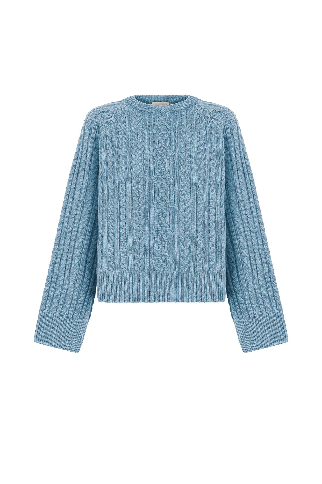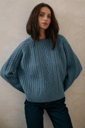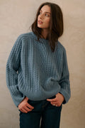 Luźny sweter z dekoracyjnym, warkoczowym splotem. Pudełkowy fason i wysokiej jakości, włoska wełna sprawia, że sweter świetnie sprawdzi w wielu stylizacjach.