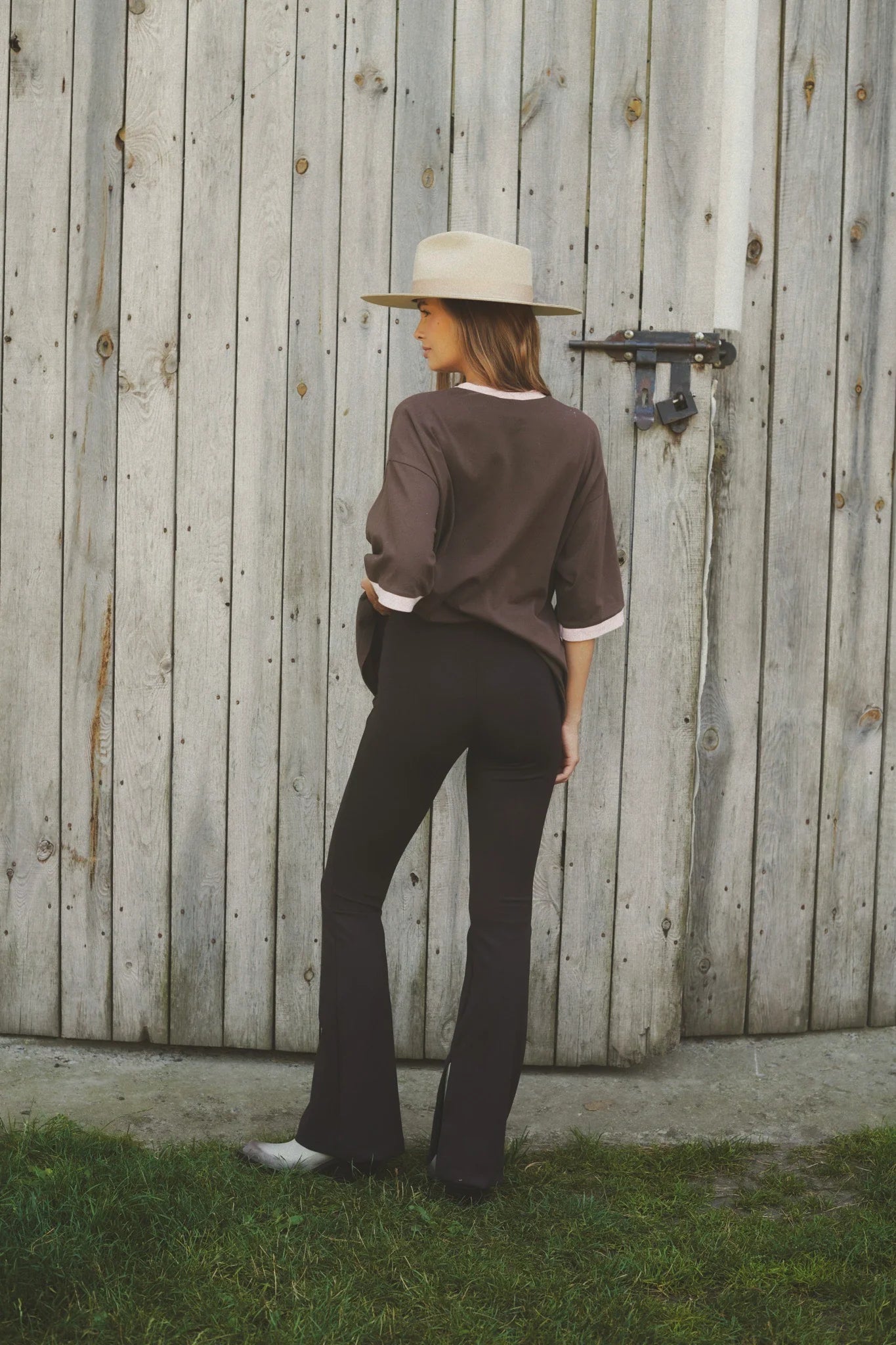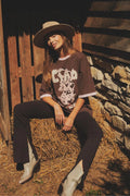 Oversizowy T-shirt Ciao Tiger w kolorze czekoladowym ze ściągaczami w kontrastowym różowym kolorze. Na przodzie wyróżnia się unikalna grafika tygrysa z łatami w kształcie serduszek, a w jednym z nich znajduje się subtelny napis „She is Sunday”. Autorska czcionka nadaje koszulce wyjątkowego charakteru, podkreślając jej oryginalny design. Idealny wybór dla osób ceniących wygodę i styl w artystycznym wydaniu.