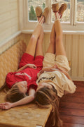 T-shirt Senorita to idealne dopełnienie karminowych szortów, które wprowadza do kolekcji Spring Brunch powiew południowego słońca i radosnej energii. Wykorzystanie dzianiny typu interlock sprawia, że materiał jest wyjątkowo mięsisty, gładki po obu stronach i niezwykle trwały, dzięki czemu t-shirt nie tylko doskonale układa się na sylwetce, ale też zachowuje swoją formę na długo. Centralnym punktem t-shirtu jest kontrastowy napis, który nadaje całości wakacyjnego luzu. Jego prosty, uniwersalny krój sprawia, że świetnie komponuje się zarówno z odważnym kolorem szortów, jak i klasycznymi jeansami, tworząc stylizację pełną wdzięku i swobody.